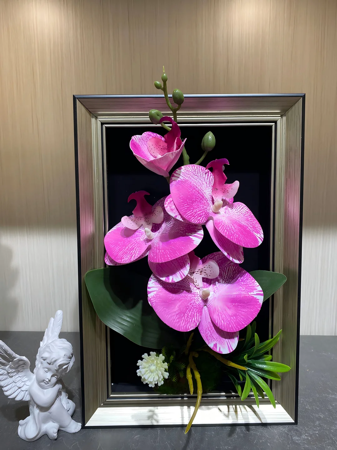 Material: High-quality artificial orchids and premium silver-tone frame